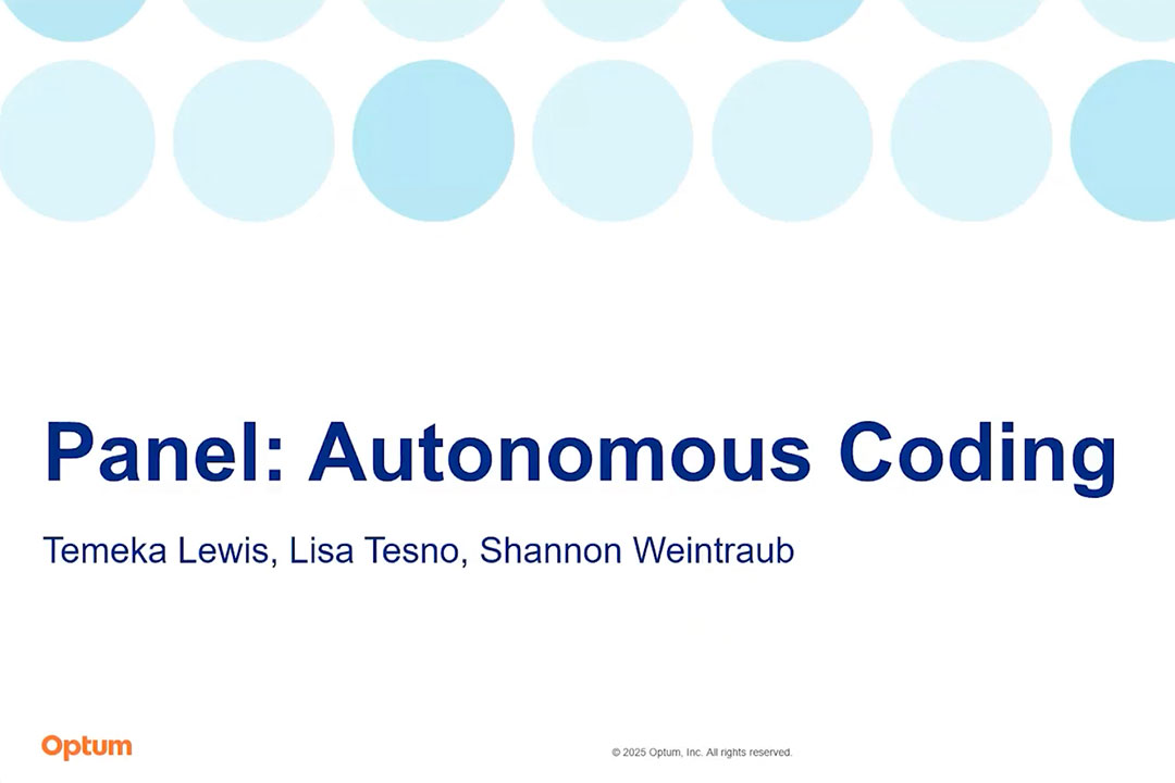 [LASHA] All right. So we are very, very excited about this next portion of the agenda, which is a panel discussion on everyone's favorite topic, which is autonomous coding. I'm very pleased to moderate this session, and I want to introduce you to our panel of Optum experts who will explore the evolving landscape of autonomous coding. We're going to talk about trends, challenges, innovations that's shaping everyone's future. This session is designed to be informative and interactive, so we want to hear from you. If you have questions, as always, utilize the Q&A box. You should see that in the bottom right-hand corner, I hope, and we'll go ahead and get started. We will hopefully have a little bit of time after this panel discussion to answer those questions, if we receive any. Our goal with this panel session is to really just foster a deeper understanding of autonomous coding and also to gather your feedback, and we hope that it will guide some of our future initiatives and some of the conversations that we've been having. So, let's go ahead and get started. So I'm very pleased to introduce our panelists for today's discussion, starting with Temeka Lewis. Temeka is the Director of Automation Capability of middle revenue cycle product. She has over 20 years of experience in the healthcare arena as a health information management and revenue cycle professional. She joined Optum as a subject matter expert for our print publications and then moved to sales within our provider market solutions. In her current role as the Director of Autonomous Capability within our middle revenue cycle pillar, she leads an agile, multi-layered team of AI and NLP developers to optimize performance of AI being used within our solutions. Temeka has an MBA in Health Services Management. She's credentialed as a CCS and CDIP through AHIMA. Also joining us is Lisa Tesno, who you guys hear from all the time. She's the Director of Value Management. She has 39 years of experience in healthcare and has been with Optum for 15 years. She leads a team of subject matter experts that support the AI technology in computer-assisted coding and clinical documentation integrity products. She is credentialed as RHIT, CCS and CDIP. Also joining us is Shannon Weintraub. She's the Director of Strategic Product Management and Automation. Shannon began her career in Optum in 1998 within the physician billing division. She quickly advanced into a leadership role and coding services, where she served for over 17 years. With more than 25 years of experience in the healthcare industry, Shannon brings deep expertise in patient financial services and coding. She's currently serving as Director of Product. She leads strategy and roadmap development for middle revenue cycle automation. Her academic background includes a BS in Business, Finance and Marketing. She also holds an MBA and completion of the Health Information Administration Program. As you can see, we have some incredible subject matter experts on our panel. Thank you, Temeka, Lisa, and Shannon, for being with us today. I'm excited to share your expertise with all of our user group participants today. So with that being said, we're going to go ahead and get started with our very first question. So, I'm going to start with you, Temeka. What is the difference between our existing computer-assisted coding solution, autonomous coding and automation?