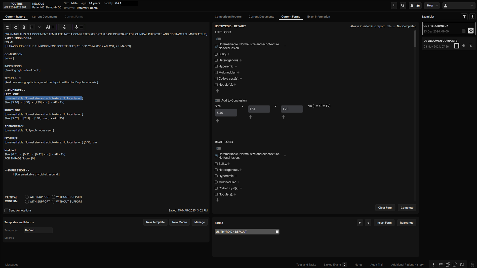 Adapt to the needs of specific exams with customizable reporting forms. Exams can be documented using user-friendly point-and-click interfaces.